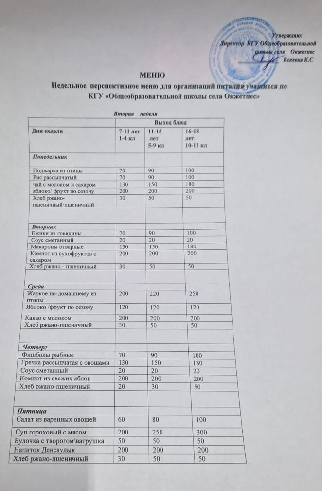 2026 оқу жылына арналған апталық мәзір Қыс-Көктем
