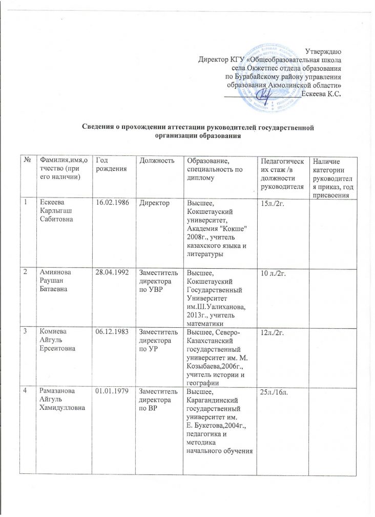 Коммунальное государственное учреждение «Общеобразовательная школа села Окжетпес отдела образования по Бурабайскому району управления образования Акмолинской области»