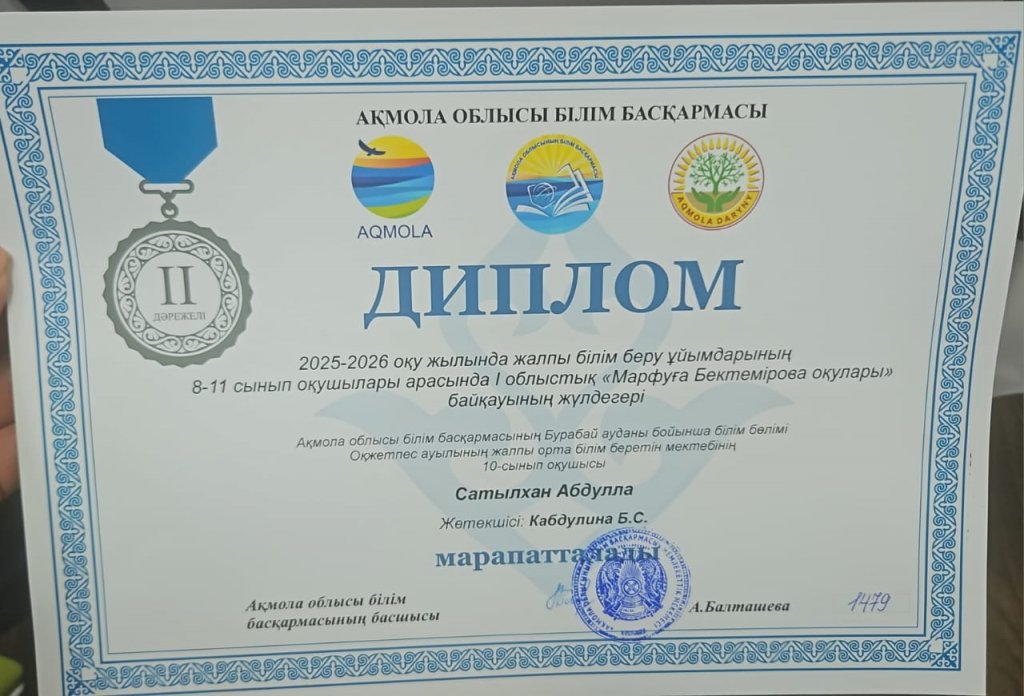 Бұл байқауға Бурабай ауданының оқушылары белсене қатысып, өздерінің өнері мен білімдерін ортаға салды. Ақтық кезеңде бар күш-жігерлерін жұмсай отырып, үздік нәтижелерге қол жеткізді және жүлделі орындарға ие болды. Байқау 3 номинация бойынша өткізілді. "Жырым оны айтпаса, кім айтады?" номинациясы бойынша Сатылхан Абдулла - Оқжетпес ауылының жалпы орта білім беретін мектебінің 10-сынып оқушысы II дәрежелі дипломмен марапатталды.